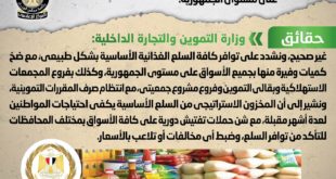 تداولت بعض وسائل الإعلام والمواقع الإلكترونية وصفحات التواصل الاجتماعي أنباء بشأن وجود نقص في السلع الغذائية الأساسية بمختلف الأسواق على مستوى الجمهورية، وقد قام المركز الإعلامي لمجلس الوزراء بالتواصل مع وزارة التموين والتجارة الداخلية، والتي نفت تلك الأنباء، مُؤكدةً أنه لا صحة لوجود نقص في السلع الغذائية الأساسية بأي …