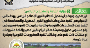 تداولت بعض المواقع الإلكترونية وصفحات التواصل الاجتماعي أنباء تزعم تعديل أحكام قانون الإصلاح الزراعي بهدف ضم أراضي هيئة الإصلاح الزراعي لملكية جهات حكومية، وقد قام المركز الإعلامي لمجلس الوزراء بالتواصل مع وزارة الزراعة واستصلاح الأراضي، والتي نفت تلك الأنباء، مُؤكدةً أنه لا صحة لتعديل أحكام قانون الإصلاح الزراعي بهدف ضم …