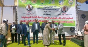نظم مركز التنمية المستدامة التابع لمركز بحوث الصحراء ومشروع تعزيز القدرة على الموائمة في البيئات الصحراوية “برايد” صباح اليوم احتفالية توزيع الكباش البرقي بمطروح، وذلك لتحسين والحفاظ على سلالة الاغنام البرقي المحسنة بحضور العميد حاتم السبع السكرتير العام المساعد لمحافظة مطروح والمهندس احمد يوسف مدير مديرية الزراعة والعمدة خير رسلان …