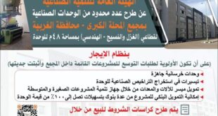 أكمل القراءة »التنمية الصناعية تطرح عدد من الوحدات الصناعية بمجمع المحلة الكبرى الخرسانى بالغربية