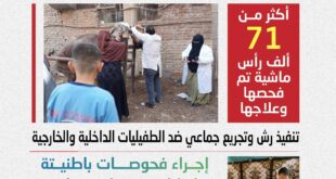 ■ “الخدمات البيطرية”: القوافل قدمت خدماتها لأكثر من 71 ألف رأس ماشية و49 ألف طائر بجميع المحافظات كشفت وزارة الزراعة واستصلاح الأراضي، ممثلة في الهيئة العامة للخدمات البيطرية، عن تنفيذ 241 قافلة بيطرية علاجية وإرشادية مجانية خلال شهر يناير، شملت 238 قرية بمختلف محافظات الجمهورية، وذلك في إطار جهود الوزارة …
