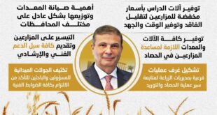 ● وزير الزراعة يعلن الاستعدادات النهائية لحصاد القمح: 2500 جنيه للإردب وصرف المستحقات خلال 48 ساعة بحد أقصى ● توجيهات عاجلة من “فاروق” لقيادات الزراعة بالمرور والمتابعة والتيسير على المزارعين وتشكيل غرف عمليات لتذليل العقبات: “نستهدف استلام 5 ملايين طن من القمح المحلي هذا الموسم” ● وزير الزراعة يوجه الزراعة …