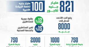 ▪︎زيادة أجور العاملين بالدولة.. «معمول حسابها في الموازنة الجديدة».. وستصرف مع مرتبات يوليو المقبل ▪︎التكلفة الإجمالية للزيادة الأخيرة بالأجور.. تتجاوز ١٠٠ مليار جنيه وترفع مخصصات الأجور بالموازنة إلى ٨٢١ مليار جنيه ▪︎زيادة فاتورة الأجور بنحو ٢١٪ العام المقبل حتى يكون هناك زيادة حقيقية فى دخول العاملين بأجهزة الموازنة تفوق معدل …