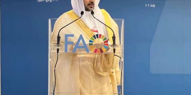 وشدد خلال كلمته على استمرار دعم المملكة لجهود منظمة الأغذية والزراعة للأمم المتحدة “الفاو”؛ لتحقيق الأمن المائي الغذائي، ومكافحة الجوع والفقر على كافة المستويات المحلية والإقليمية والدولية.