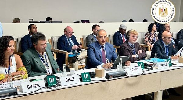 وفى كلمته بالجلسة .. أشار الدكتور سويلم لما تواجهه مصر من تحديات فى قطاع المياه والناتجة عن محدودية الموارد المائية والتى تغطى نسبة ٥٠% فقط من إحتياجاتها المائية ، فى حين تغطى الصحراء نسبة ٩٥% من مساحة مصر نتيجة ضعف التساقط المطرى ، بالإضافة للتأثيرات السلبية للتغيرات المناخية التى توثر على مصر سواء داخليا من خلال موجات الحرارة العالية والسيول الومضية وارتفاع منسوب سطح البحر أو خارجيا من خلال التأثير الغير متوقع على منابع النيل فى الوقت الذى تعتمد فيه مصر بنسبة ٩٨% على نهر النيل لتوفير المياه .