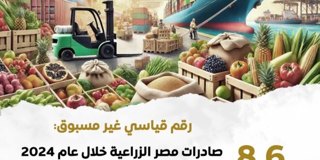 رقم قياسي غير مسبوق:8.6 مليون طن صادرات مصر الزراعية خلال عام 2024 بزيادة أكثر من 1.1 مليون طن عن عام 2023