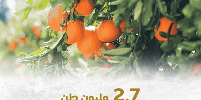 احتلت الصادرات من الموالح المركز الأول بإجمالي 1.3 مليون طن.