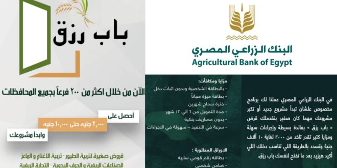 البنك الزراعي يوفر برنامج “باب رزق” لتمويل المشروعات متناهية الصغر فى فروعه المحرر 19 سبتمبر، 2021 تمويل شاركها Facebook Twitter Stumbleupon LinkedIn Pinterest
