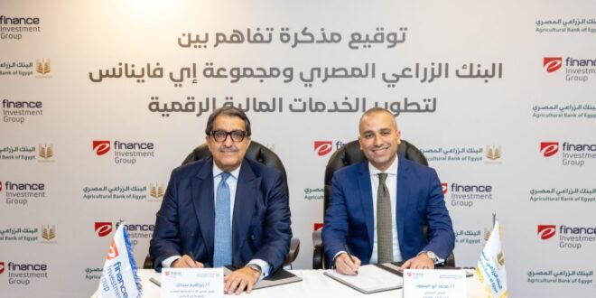 في إطار سعي البنك الزراعي المصري لتعزيز خدماته المالية الرقمية، وتقديم حلول مالية مبتكرة تلبي احتياجات مختلف شرائح المجتمع، وقع البنك مذكرة تفاهم مع مجموعة “إي فاينانس” للاستثمارات المالية والرقمية، بهدف تطوير وتفعيل الخدمات المالية الرقمية، وزيادة قاعدة العملاء المستفيدين منها، تماشياً مع توجه الدولة نحو التحول الرقمي وتعزيز الشمول المالي.