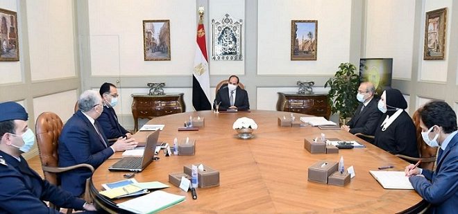 اجتمع الرئيس عبد الفتاح السيسي اليوم مع الدكتور مصطفى مدبولي رئيس مجلس الوزراء، والمهندس شريف إسماعيل مساعد رئيس الجمهورية للمشروعات القومية والاستراتيجية، والسيد القصير وزير الزراعة واستصلاح الأراضي، ونيفين جامع وزيرة التجارة والصناعة، والمقدم طيار بهاء الدين الغنام مدير مشروع “مستقبل مصر”.