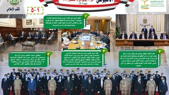 وأشار الانفوجراف إلى افتتاح الرئيس عبد الفتاح السيسي المدينة الصناعية الغذائية “سايلو فودز ” بمدينة السادات في محافظة المنوفية، حيث تساهم في استقرار وانخفاض الأسعار في السوق المحلية، إضافة إلى كونها قلعة صناعية تضيف لقدرات مصر التصديرية، فضلا عن بروتوكول التعاون الذي شهده الدكتور مصطفى مدبولي رئيس مجلس الوزراء، بمقر مجلس الوزراء، بين كل من: وزارة الزراعة واستصلاح الأراضي، والموارد المائية والري، والمالية، ، والبنك الأهلي المصري، والبنك الزراعي المصري، لتنفيذ المبادرة القومية لتطوير الري والتحول إلى الري الحديث.