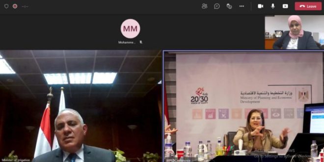 عقد الدكتور محمد عبد العاطى وزير الموارد المائية والري إجتماعا مع الدكتورة هالة السعيد وزيرة التخطيط والتنمية الاقتصادية بتقنية الفيديوكونفرانس لإستعراض الموقف التنفيذى للخطة الاستثمارية للعام المالي الحالي 2022/2021 والخطوط العامه لمقترح خطة الوزارة للعام المالي القادم 2023/2022.
