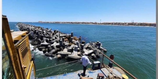 – نهو عملية إنشاء حاجز غاطس وأعمال حماية بأطوال ٨٠٠ متر لحماية المنطقة غرب لسان رأس البر