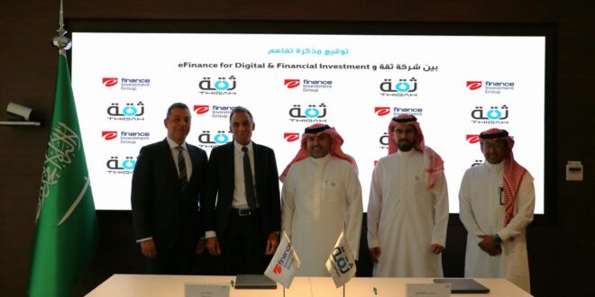 بدأت مجموعة إي فاينانس للاستثمارات المالية والرقمية خطواتها الأولية فى تنفيذ أحد محاور خطتها الاستثمارية والتي كانت قد أعلنت عنها ووعدت بها مؤخراً في التوسع خارج حدود جمهورية مصر العربية واختراق الأسواق العربية والأفريقية، حيث أعلنت مجموعة إي فاينانس للاستثمارات المالية والرقمية ش.م.م (كود البورصة المصريةEFIH.CA)، وهي الشركة الرائدة في تطوير وإدارة وتشغيل الشبكات التكنولوجية للمعاملات الرقمية وأول شركة Fin-tech بالمعنى الحديث في مصر، عن توقيع مذكرة تفاهم مع شركة «ثقة لخدمات الأعمال» السعودية، المتخصصة في تقديم حلول التحوّل الرقمي الابتكاري والخدمات الرقمية للقطاعين العام والخاص في المملكة العربية السعودية الشقيقة.